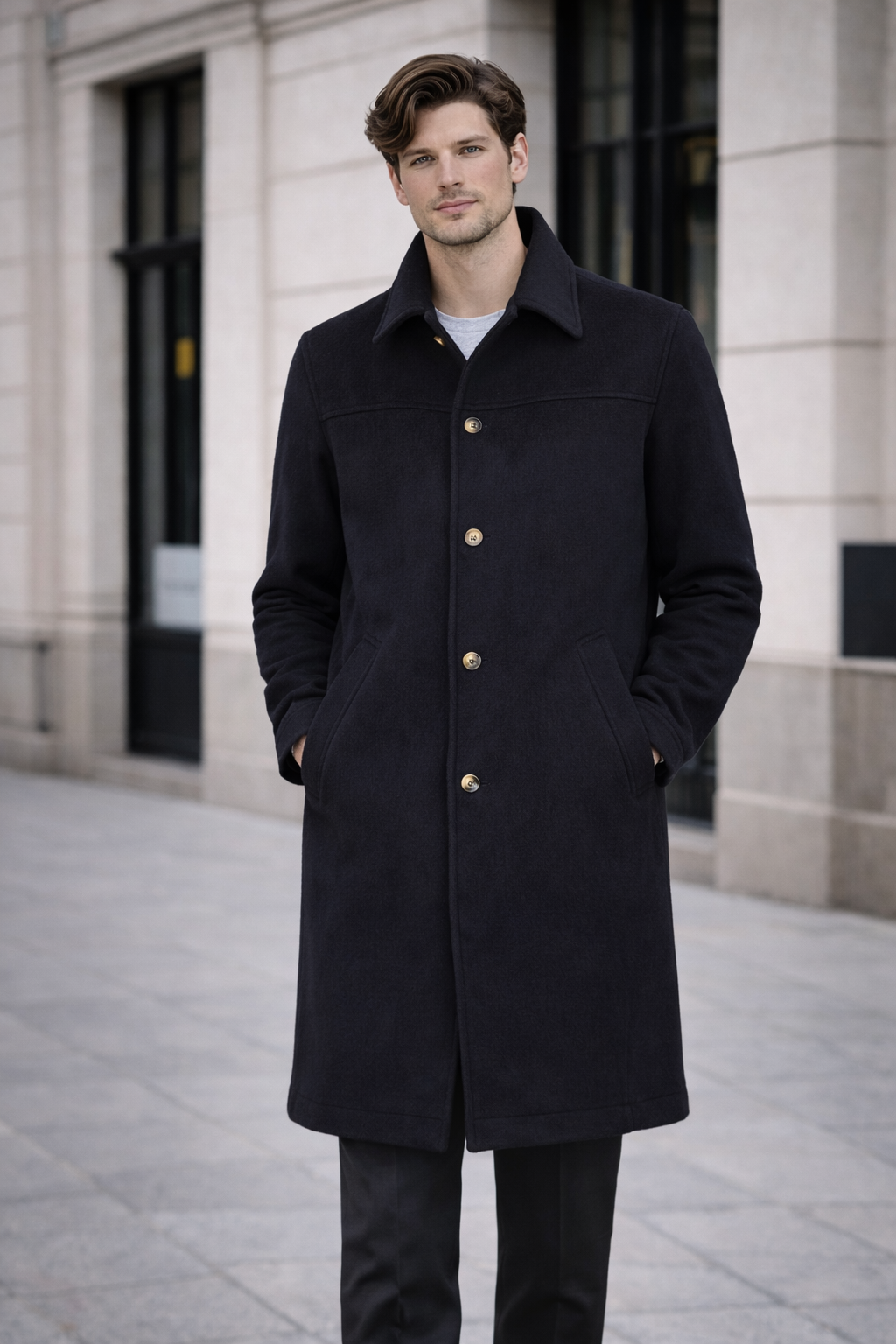 The front closure is fastened with authentic real horn buttons, reinforcing the coat’s premium construction and traditional character. Designed with open cuffs, it offers a relaxed fit that allows ease of movement and effortless layering over shirts, knitwear, or overshirts.